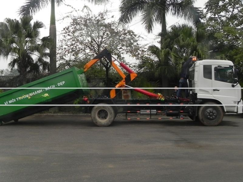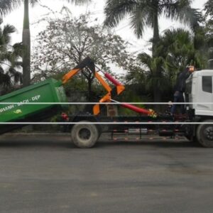 - Cẩu thùng: Nâng và kéo thùng rác lên xe một cách an toàn, nhanh chóng.